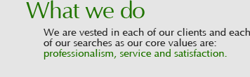 We are a woman owned search and consulting services organization providing direct placement, retained search and contract professionals across many functional disciplines. Each candidate is screened, interviewed and goes through a comprehensive background and skills verification before being presented for consideration. We are vested in each of our clients and each of our searches as our core values are: |